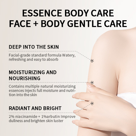 Description: Contains essential ingredients such as niacinamide and α-arbutin, which have a brightening effect, making the skin crystal clear, delicate and smooth. It is supplemented with essential ingredients such as glycerin, panthenol, hyaluronic acid, etc. The watery texture is refreshing and easy to absorb, replenishing the skin with the necessary moisture, improving dehydration and dryness, and radiating skin radiance, showing hydrated and translucent skin.