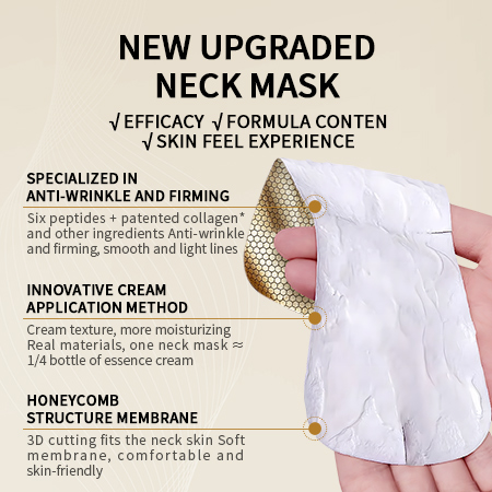 Description: The anti-wrinkle and firming neck mask is specially formulated with active essence to provide delicate care for the neck skin. It replenishes moisture, moisturizes dry and rough skin, reduces neck wrinkles, and tightens the neck, making the neck skin glow with a charming radiance.