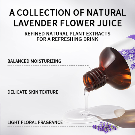 Description: This product is taken from lavender flower spikes and retains rich natural ingredients to replenish moisture to the skin, refine skin texture, and make the skin moist, delicate and shiny.
