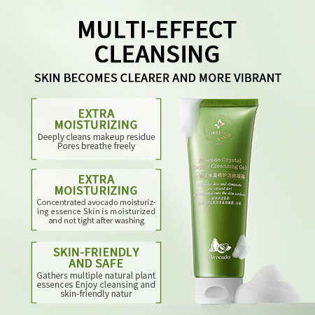 Description: Contains skin-friendly avocado essence, which is as pure and transparent as crystal, with a soft texture and rich foam. It can deeply cleanse the skin and remove excess oil and dirt, while keeping the skin hydrated and not tight.