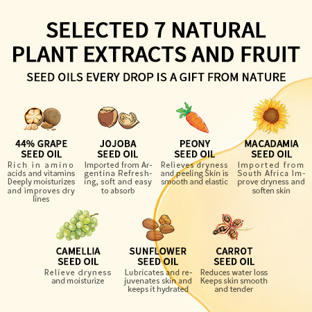 Description: Contains seven seed essence, oily essence moisturizing but not greasy, gently massage to protect the skin, improve skin dryness and dehydration. The ball bottle design is convenient to carry around, the skin is gently massaged to make the skin moisturized, smooth and tender.