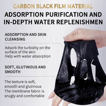 Description: Selected from the essence of black truffles and combined with a variety of plant ingredients, it replenishes the moisture needed by the skin, making it moist and tender. The carbon black film fabric is selected, featuring a fine fibrous and porous structure. It is tailored to fit the facial skin closely, helping to deeply adsorb and purify the skin, making it glow with natural radiance.